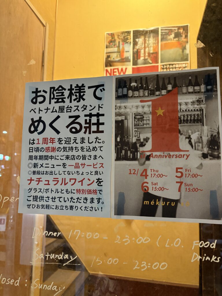めくる荘が1周年を迎えました。 知る人ぞ知る、神楽坂駅近のベトナム料理店です。 ナチュラルワインに合わせて楽しむ洒落たお店。。。 ワインとアジア料理って!? と思って半信半疑で入ってみたけど美味しくてハマってしまった。 1周年記念ということで、... -